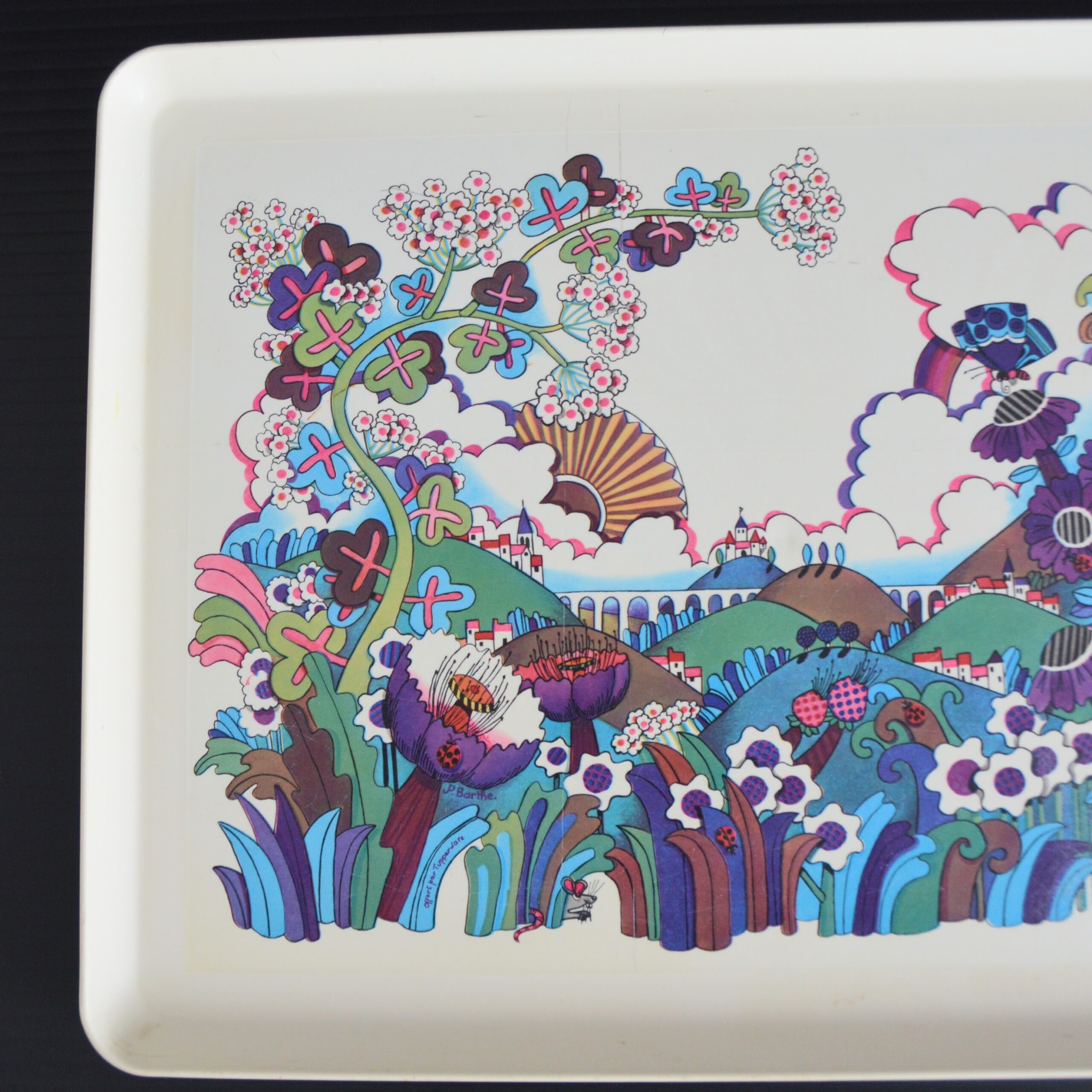 Plateau Tupperware JP Barthe dessin psychédélique vintage 1970s