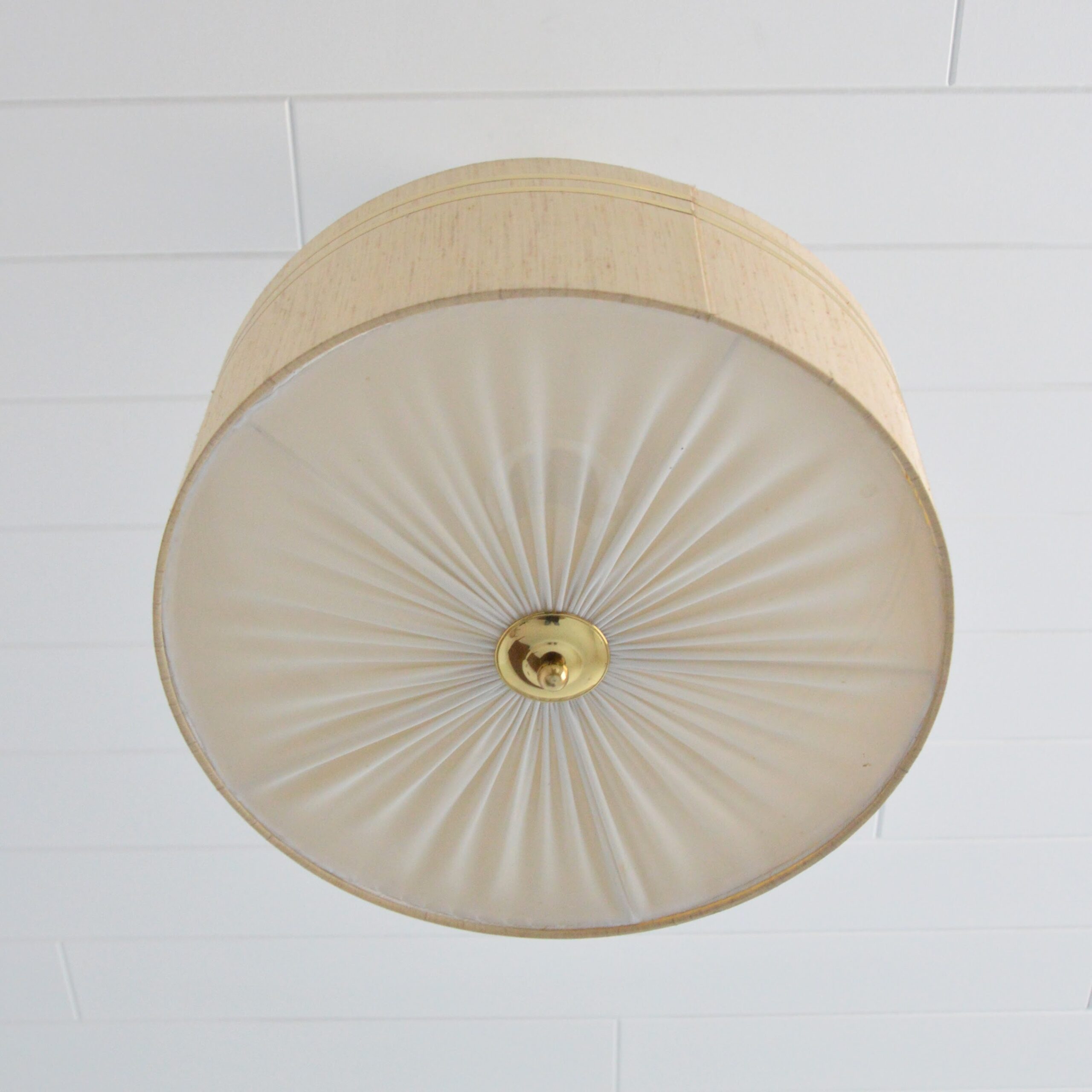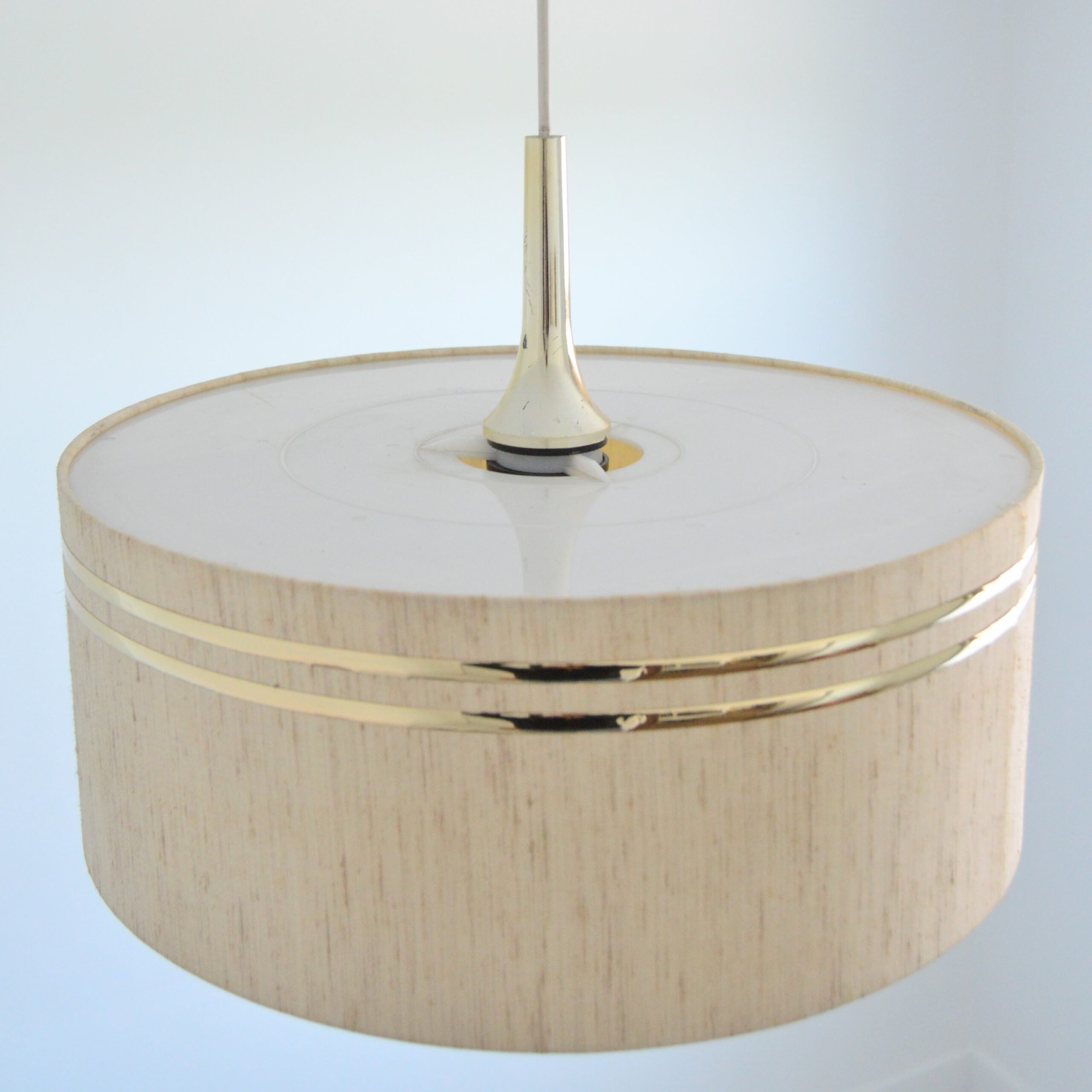 Abat-jour en lin et liserés doré.