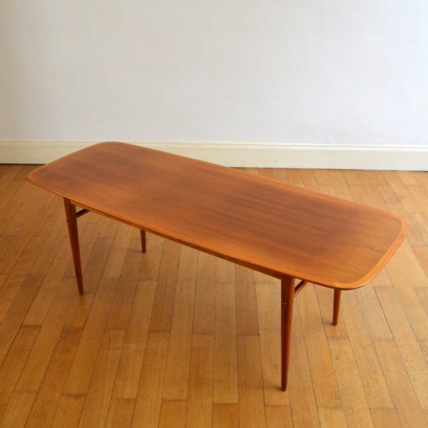Table basse scandinave 1960s Jolie table basse scandinave, datant des années 60. Bois blond, fine et élégante. L 139/P 52/H 48 cm Quelques traces d'usages, en bon état. Produit vendu
