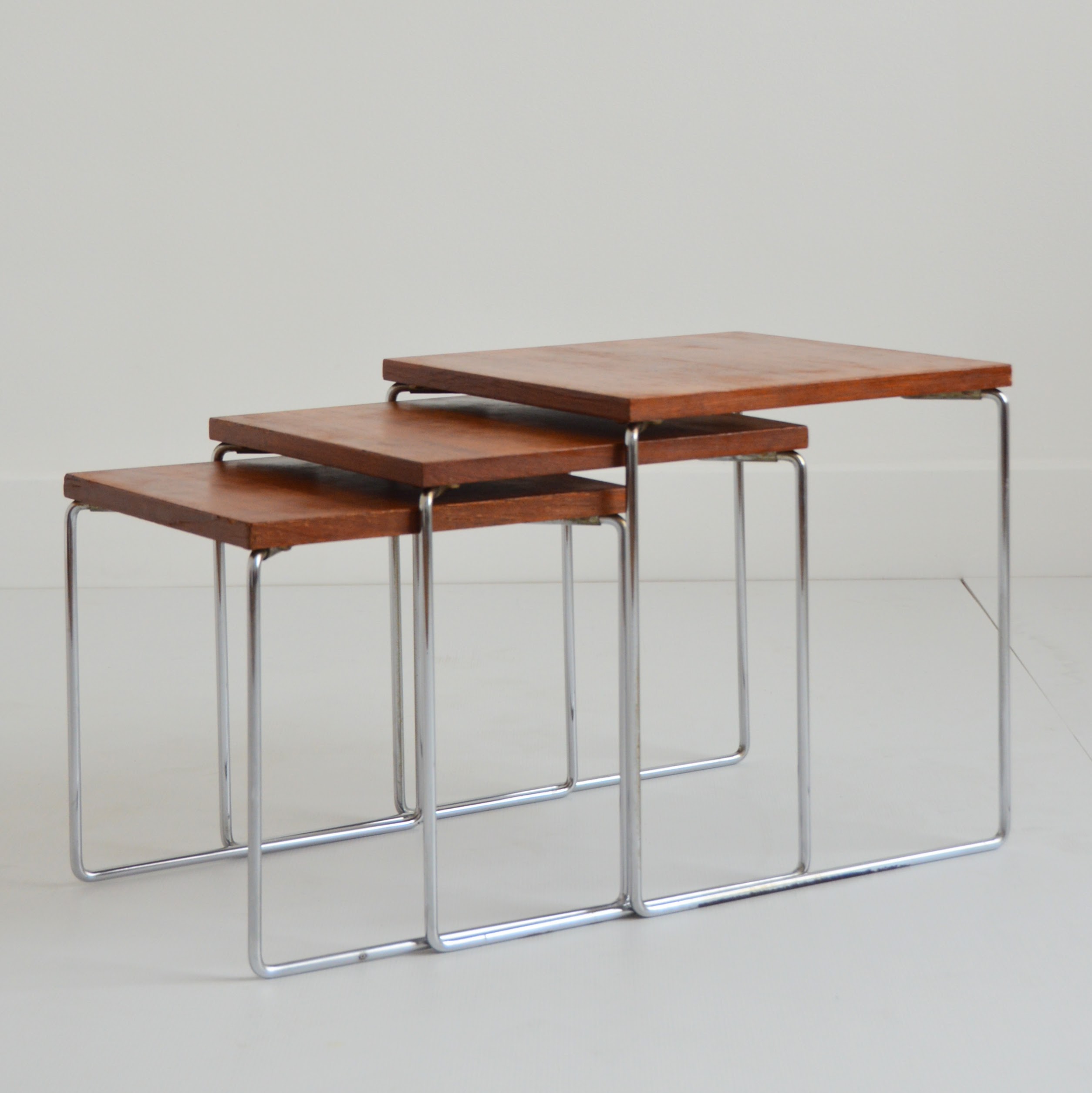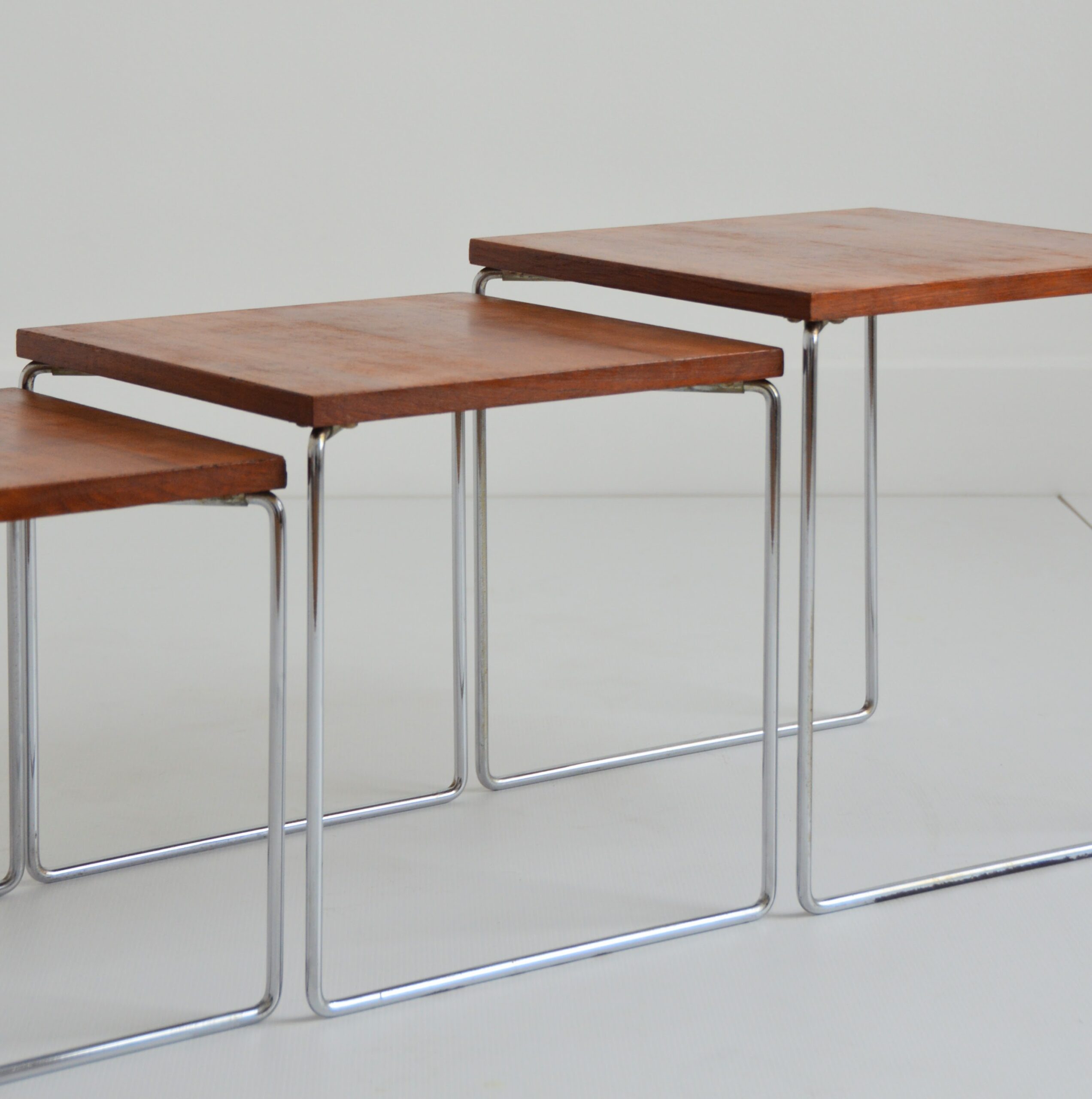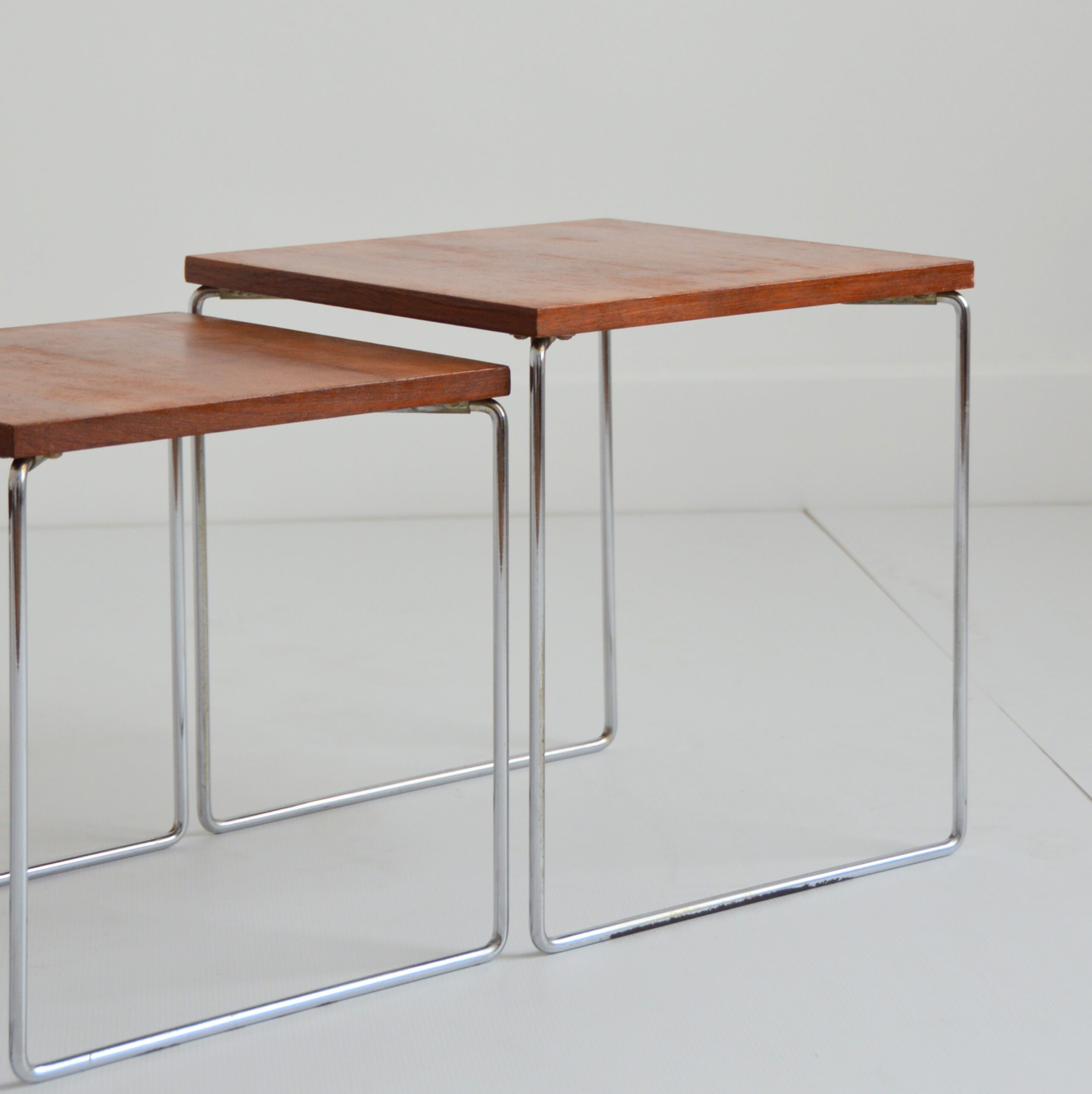 Tables gigogne en teck et chrome par Brabantia 1950 / 1960 vintage
