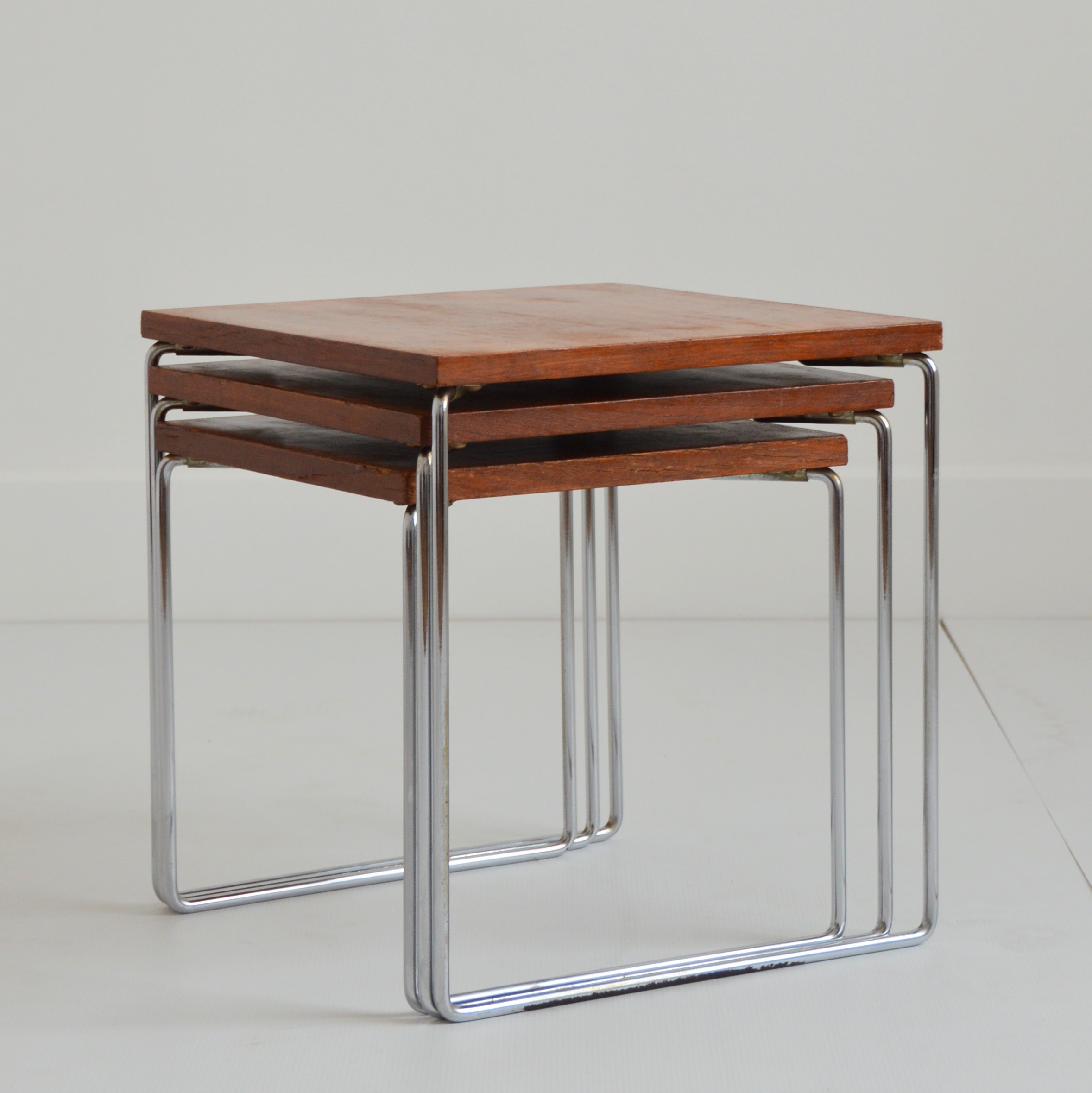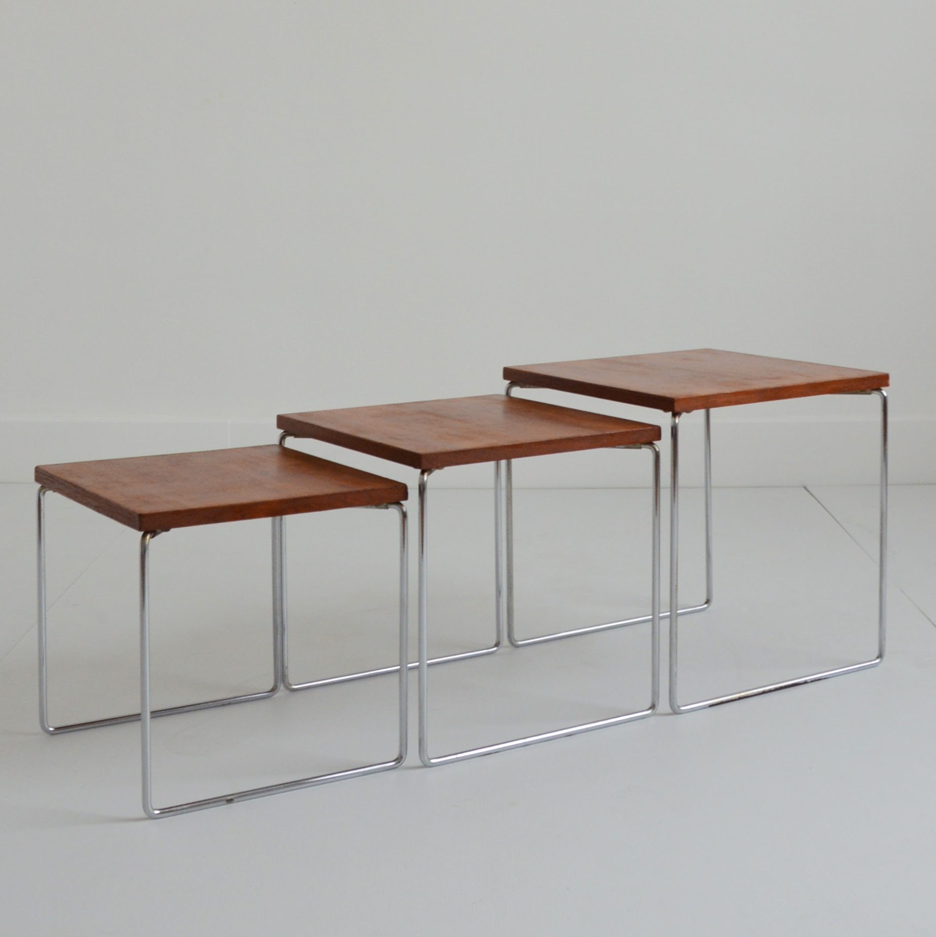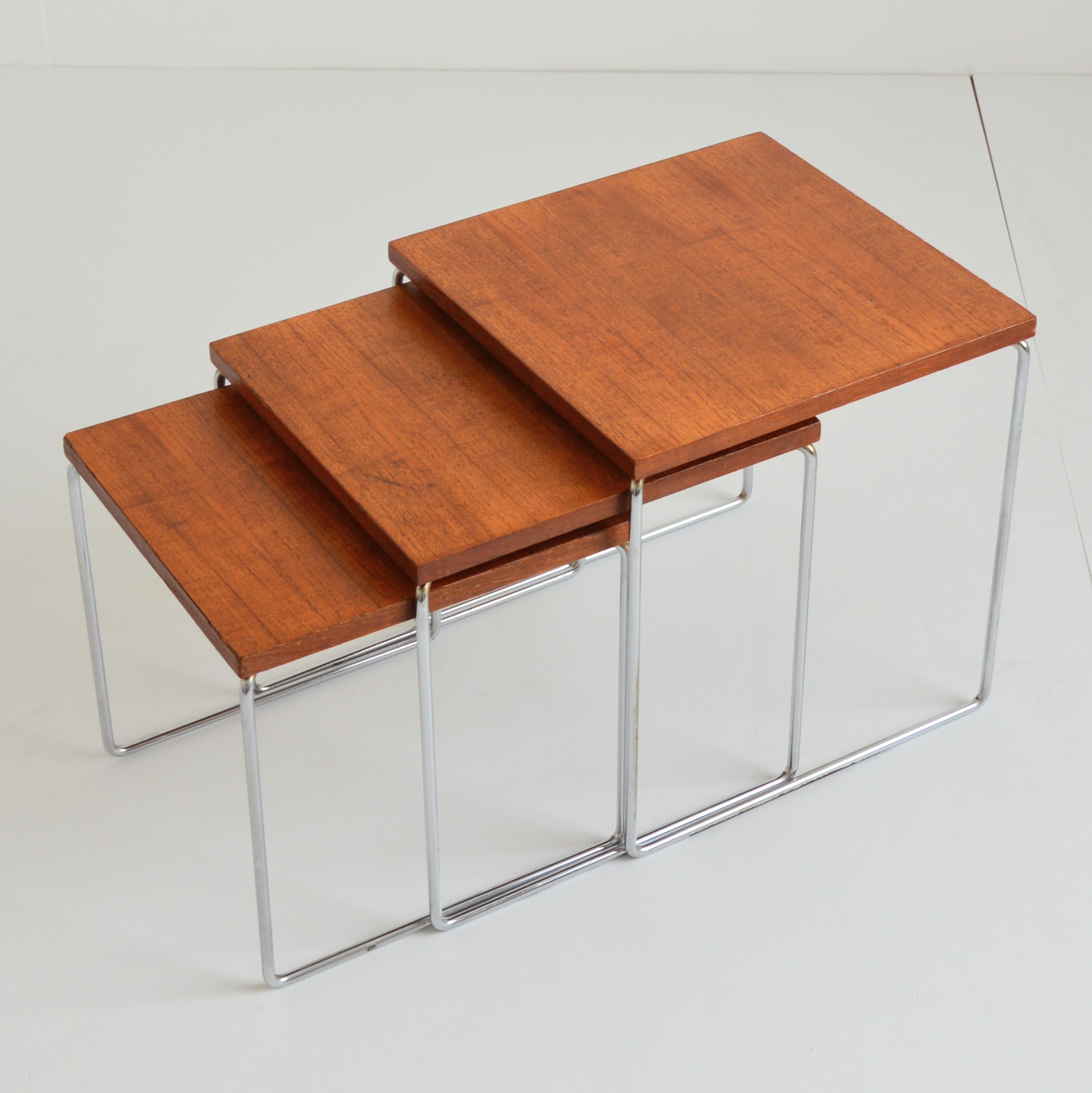 Tables gigogne en teck et chrome par Brabantia 1950 / 1960 vintage